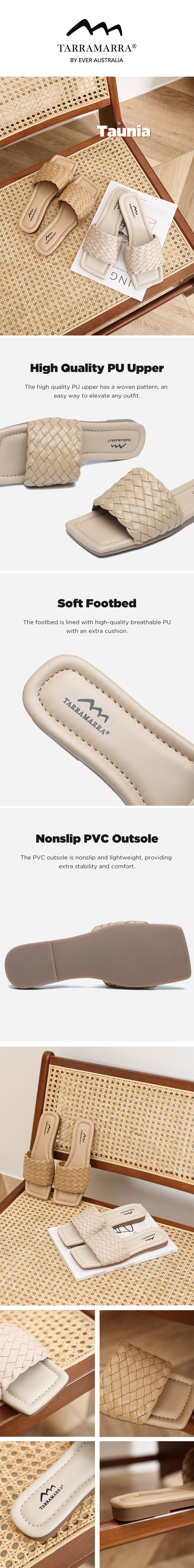 The staple you never knew you needed, the Tarramarra Taunia Woven Flat Sandals are a must for any wardrobe. Available in stylish neutral colours, the woven pattern is an easy way to upscale any outfit. These sandals are comfortable too, made with extra cushioning and a high-quality footbed for essential breathability. Watch as these become frequent in all your ensembles.