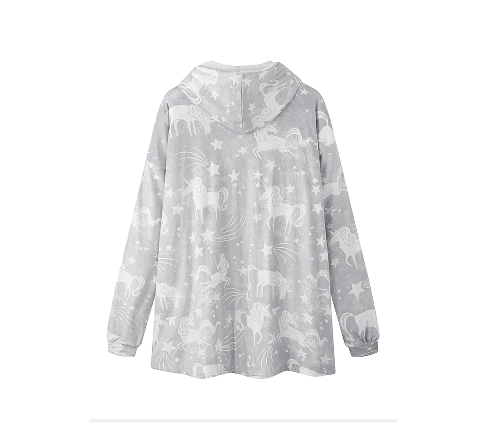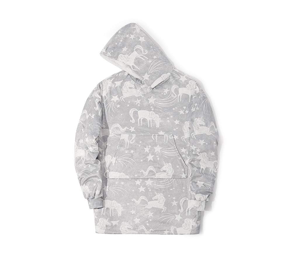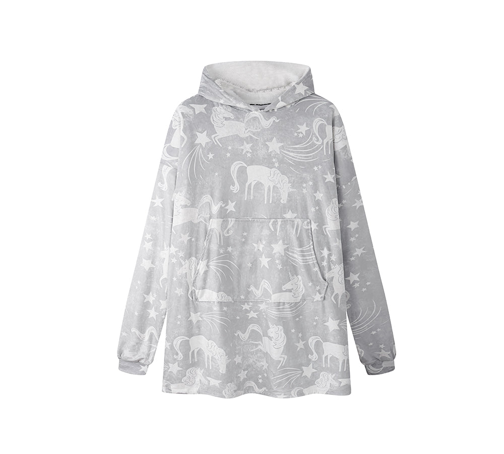 TARRAMARRA® Women and Men Reversible Hoodie Blanket Grey Unicorn #TAZS2115