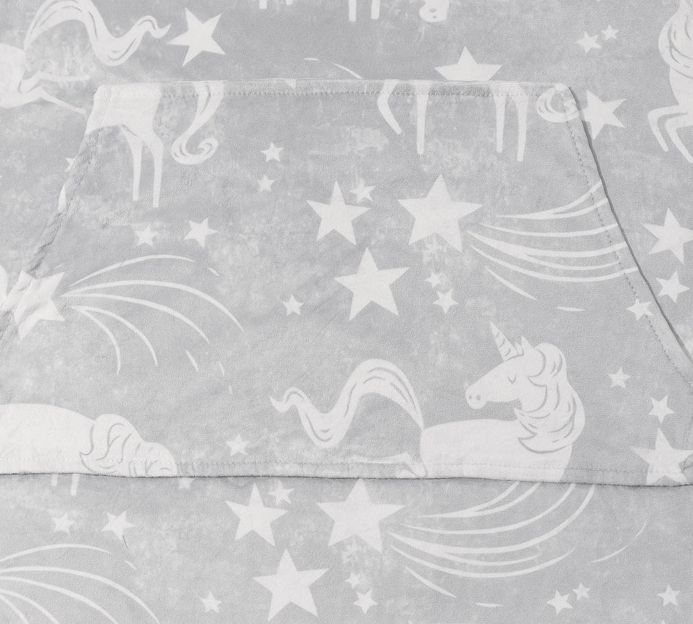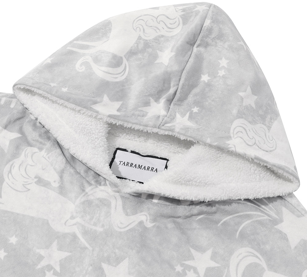 TARRAMARRA® Women and Men Reversible Hoodie Blanket Grey Unicorn