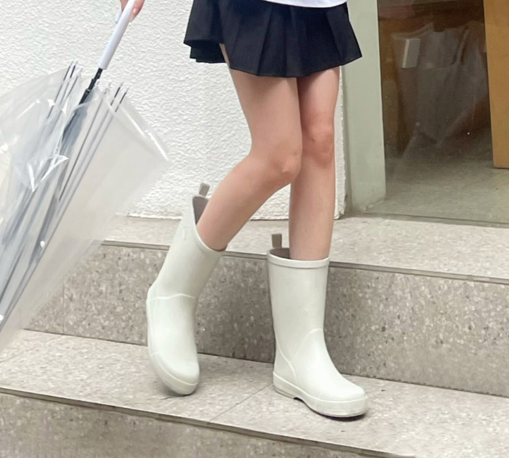 Introducing the EVERAU Cora Short Gumboots, perfect for navigating rain or going about your day in comfort and style. Crafted from durable rubber, these boots provide water resistance and a modern look. They are available in both white and black, allowing you to easily coordinate with your wardrobe. The rubber outsole features raised square grip blocks, enhancing traction and durability for various conditions.